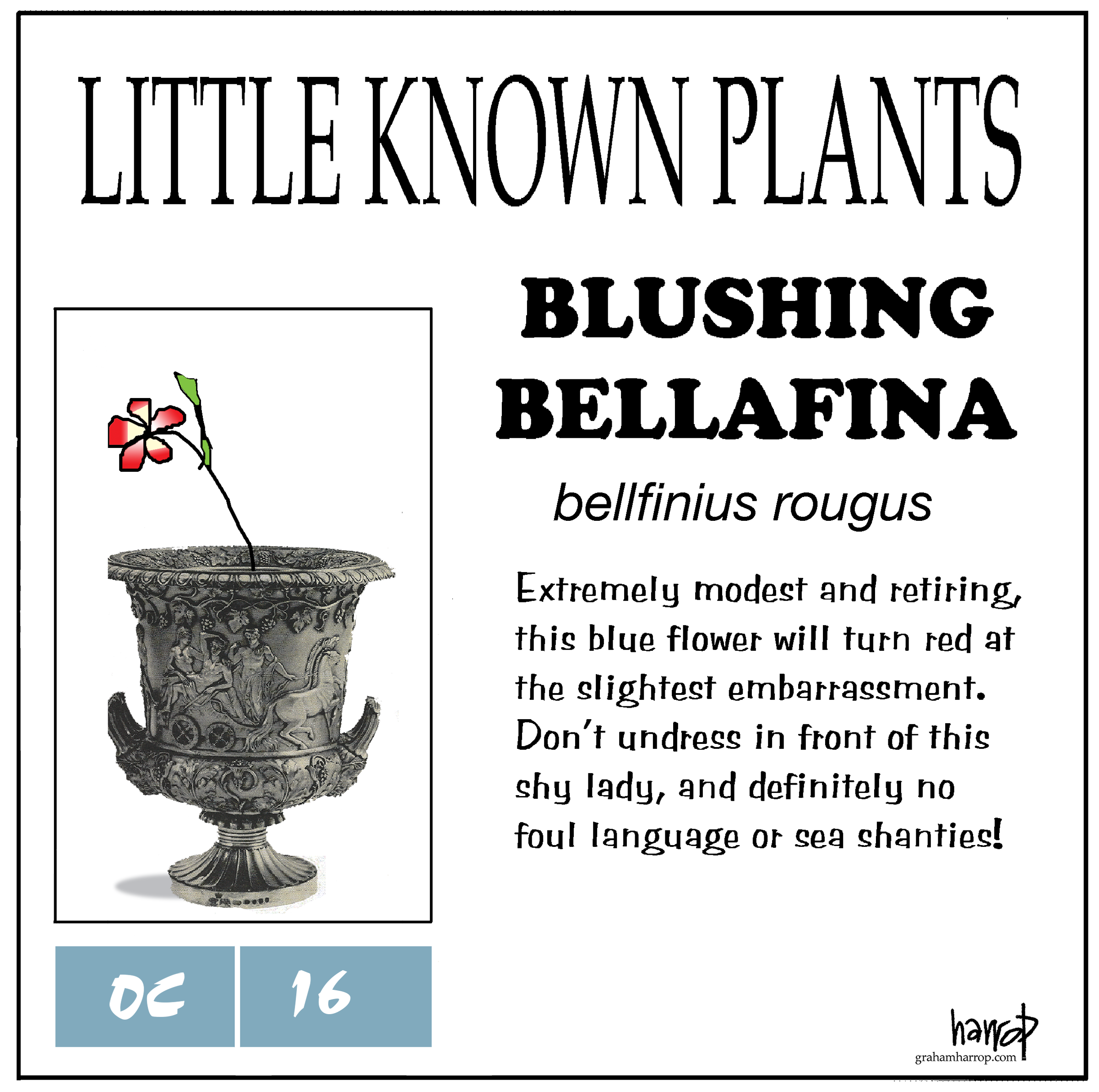 Posted byGraham HarropPosted ingardens, natureTags:awkwardness, blushing, calendar, cartoons, flowers, plants, shyness