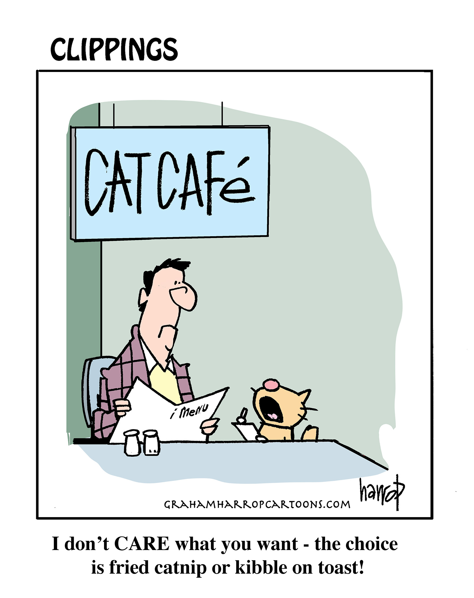 Posted byGraham HarropPosted inhumorTags:animal shelter, animal welfare, cat cafe, cat cartoons, cat memes, cats, funny cats, kindness, kitties, restaurant, vegetarian