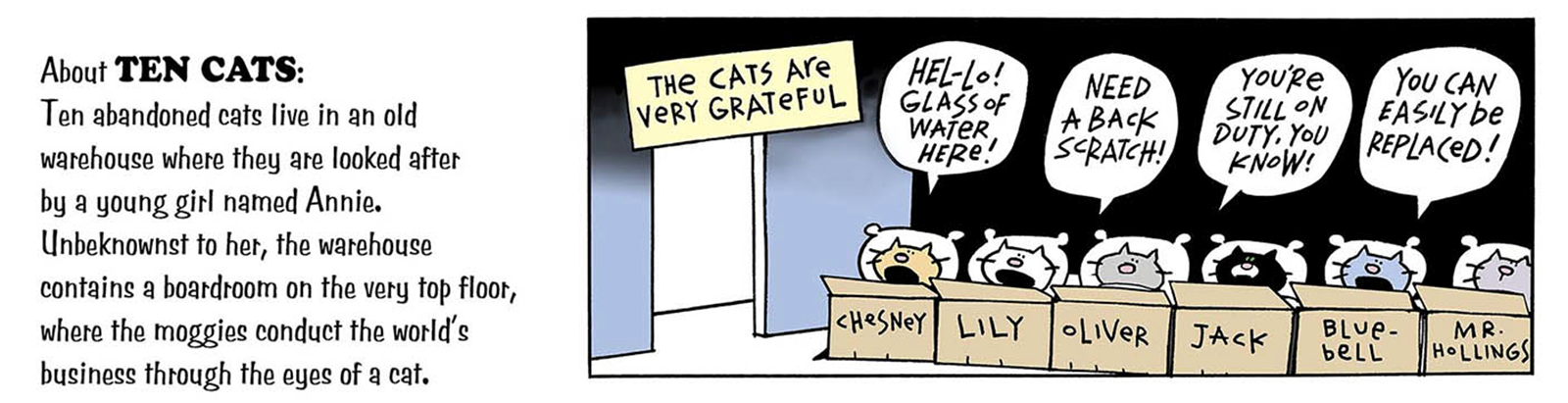 I am a west coast cartoonist, and I draw the daily "TEN CATS" comic strip on www.gocomics.com and am a cartoonist for The Vancouver Sun. My cartoon collections are available through Gryndstone and Fusspot Press and Ronsdale Press.