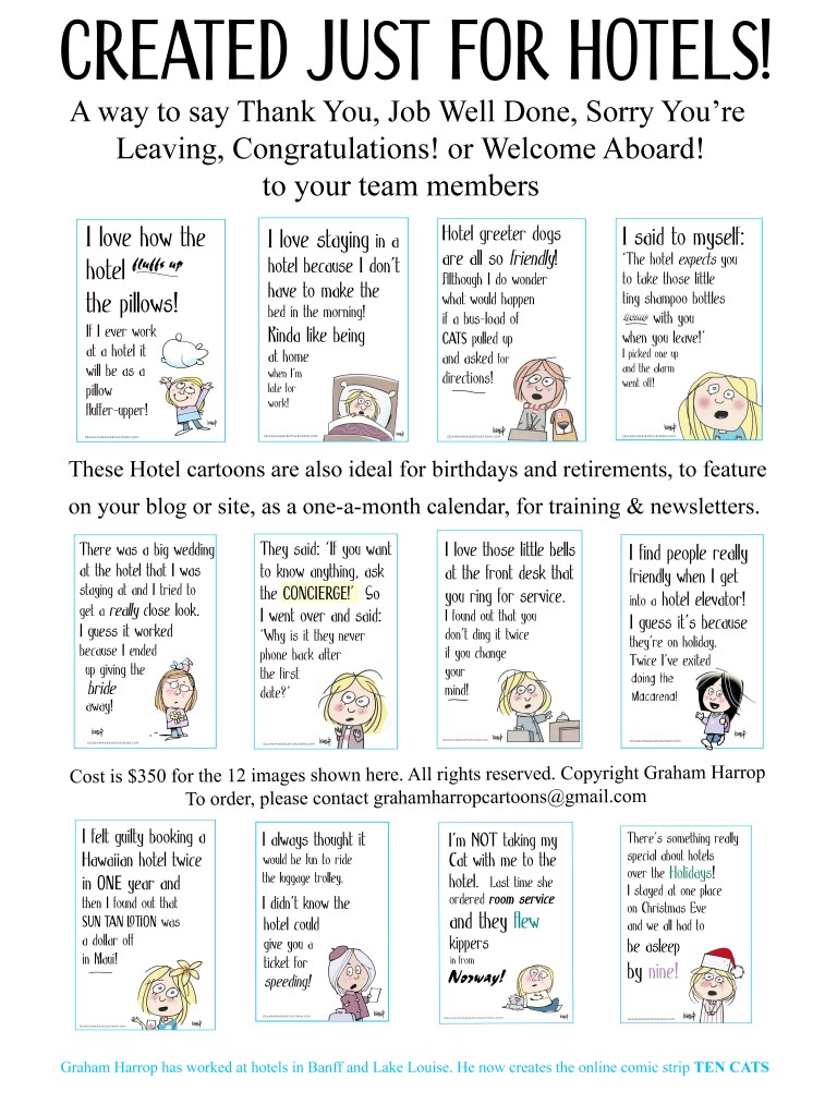Graham Harrop Cartoons – Hotels Cartoons will be sent together in a zip file or in your preferred format. (Designs subject to slight tweaks – the man is an artist, after all!) 5×7″ greeting cards can be set on template by request @ n/c Share this: Share on X (Opens in new window) X Share on Facebook (Opens in new window) Facebook Like Loading...